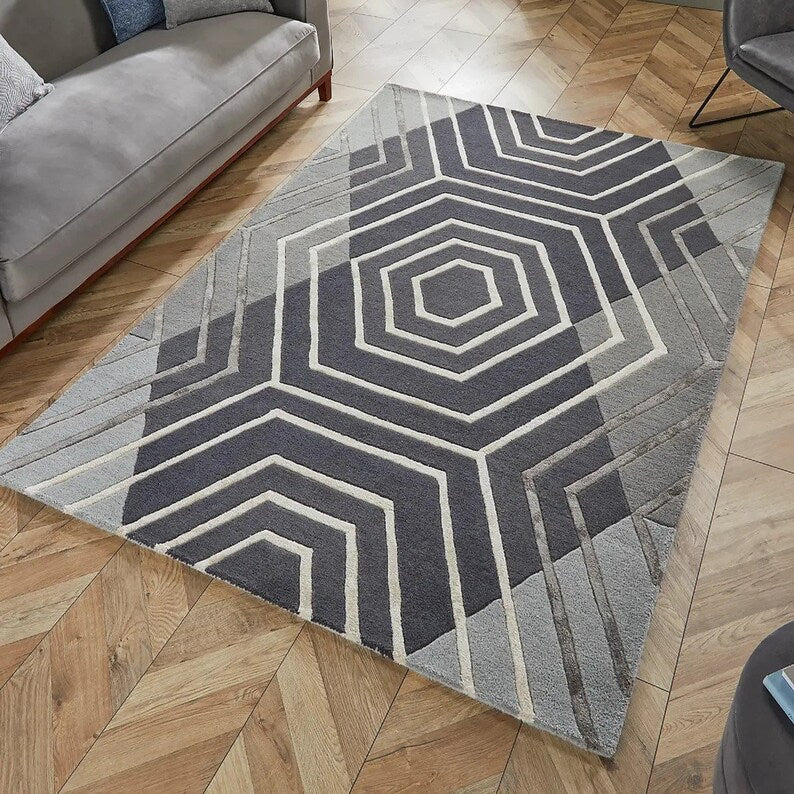 Gray and Dark Gray Color Modern Hand Tufted Design Rug