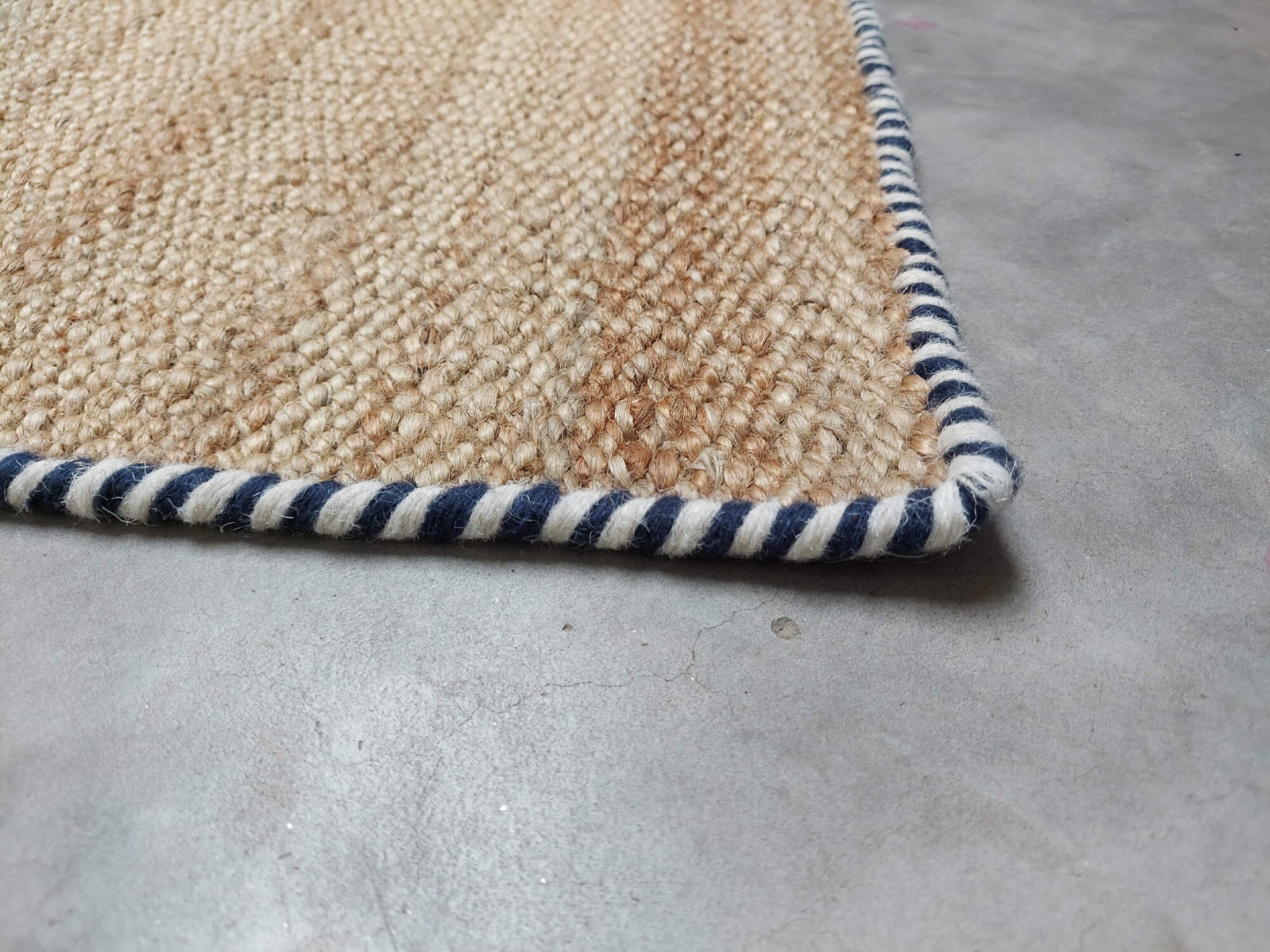 BENGAL CARNIVAL – NATURAL JUTE WITH NAVY & WHITE RUGS