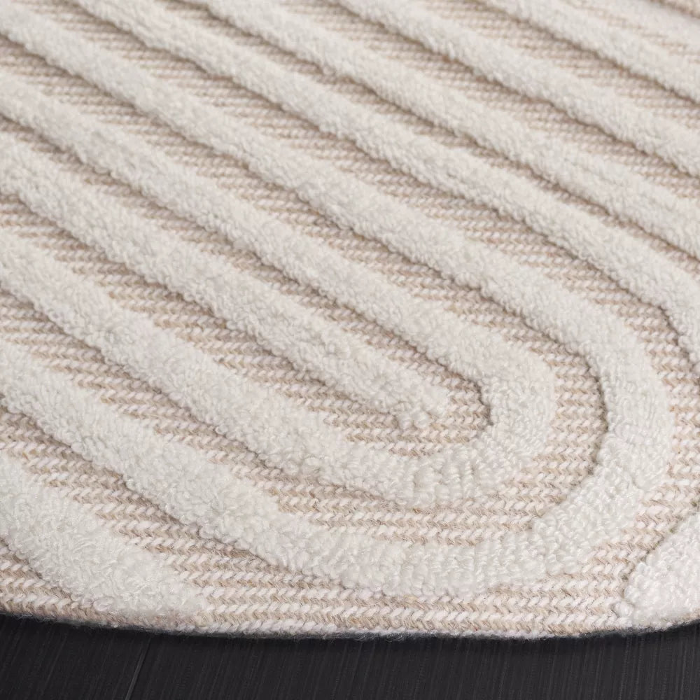 Round Beige Color Hand Tufted Rug-Bisha-Rugs