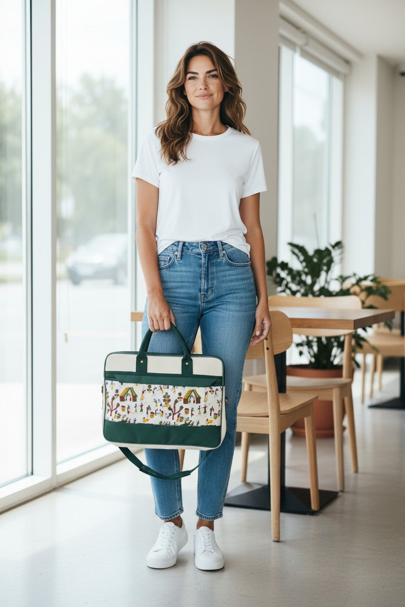Traditional Art Print Jute Laptop Bag - Timeless Art, Modern Professional